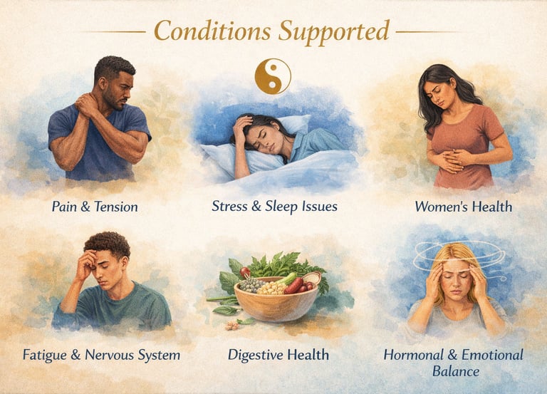 Your first session begins with a comprehensive conversation about your overall health, medical history, lifestyle, and current concerns. This allows us to understand your unique patterns and goals. Based on this assessment, a personalized treatment plan is created and your acupuncture treatment begins the same day.